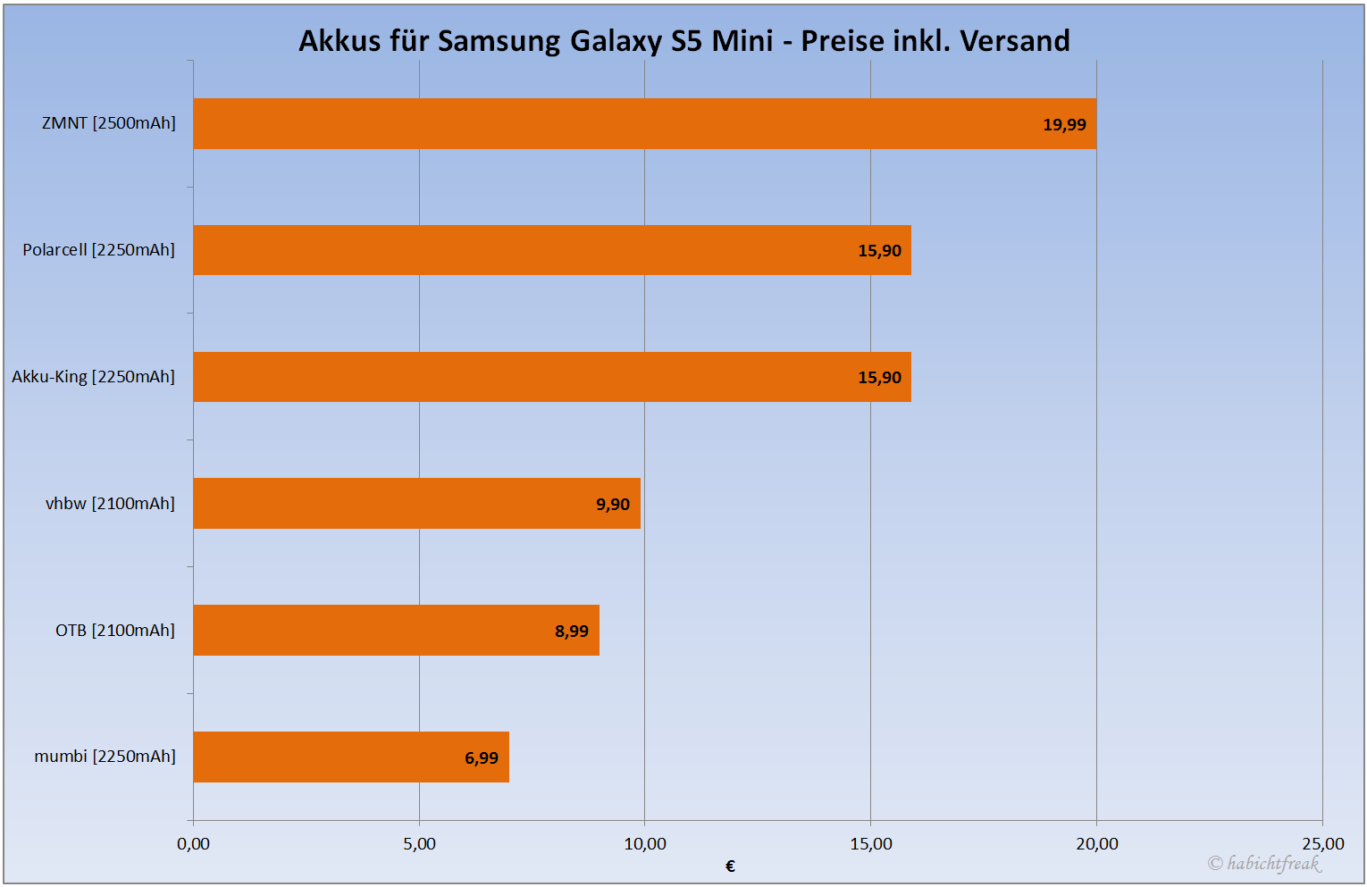 Ich habe mir kürzlich ein gebrauchtes Samsung Galaxy S5 Mini gekauft. Nach ca. 5 Jahren Nutzungszeit, ist der Akku wahrscheinlich nicht mehr so fit wie früher. Aber muss es unbedingt ein originaler Akku sein, oder reicht auch einer von einem Drittanbieter? Original Samsung kostet bei bekannten Händlern (MM, Conrad, Mindfactory) um die 20-40 €, und ob es sich um originale handelt, muss immer hinterfragt werden (siehe diverse Tests). Akkus von Drittanbietern liegen bei 7€ bis hinauf zu 30€ für Akkus mit mehr Kapazität.