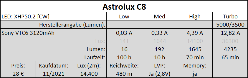 | Astrolux C8 (XHP50.2) (Review) | ||
