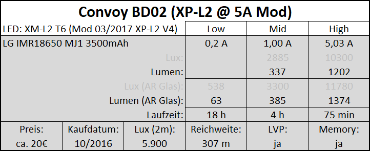 | Convoy BD02 (XP-L2 @ 5A Mod) | ||