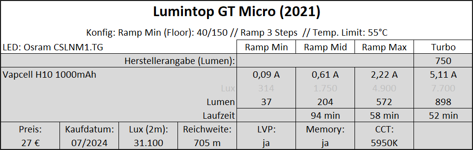 | Lumintop GT Micro (Osram NM1) | ||