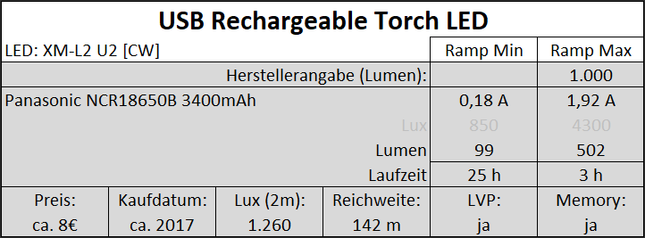 | "USB Rechargeable Torch LED" (XM-L2) | ||