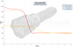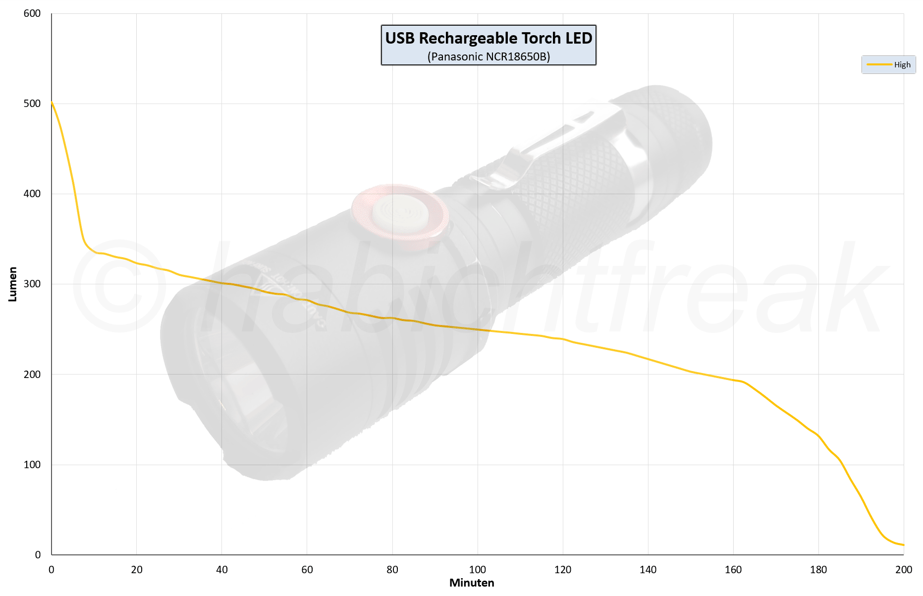 Für die Laufzeitdiagramme wird die Helligkeit "händisch" gemessen (ich habe kein Gerät das die Werte automatisch an den PC übertragen kann). Die Messungen für Lumen (umgerechnet aus Lux), findet in einer selbstgebauten Kiste mittels ceiling bounce statt. Die fließende Stromstärke wird mittels Zangenamperemeter gemessen.