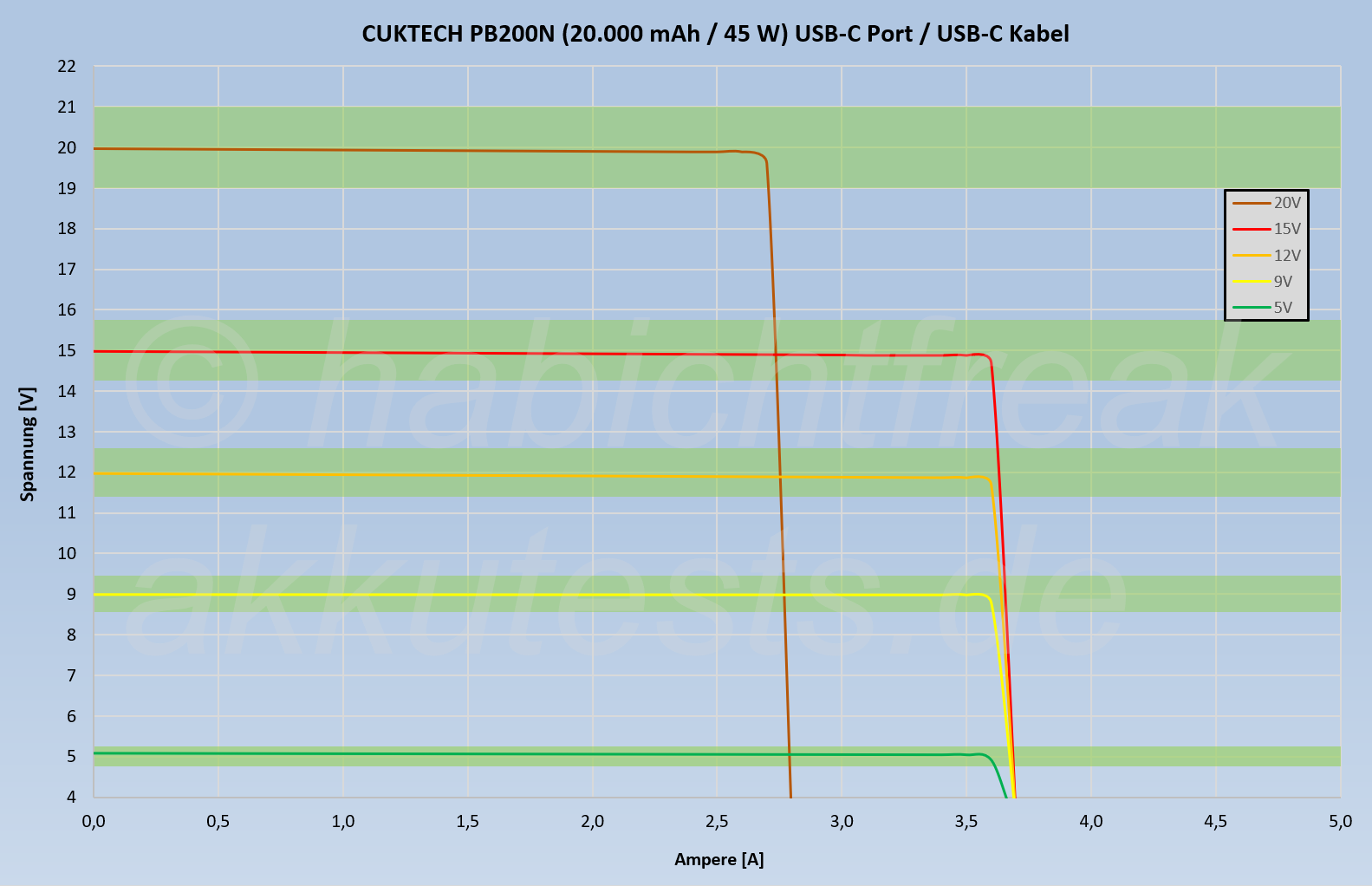 Ich fange mal mit den positiven Punkten an: Die PB200N liefert pro Port die Leistung die versprochen wird und hat auch ein paar Reserven. Nutzt man mehrere Ports gleichzeitig, stehen nicht nur 15W zur Verfügung die CUKTECH nennt, es sind sogar 23W. Den Dauertest mit 40W hat die PB200N von CUKTECH problemlos überstanden. Genau der Punkt, an dem die INIU P51L gescheitert ist.