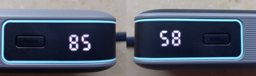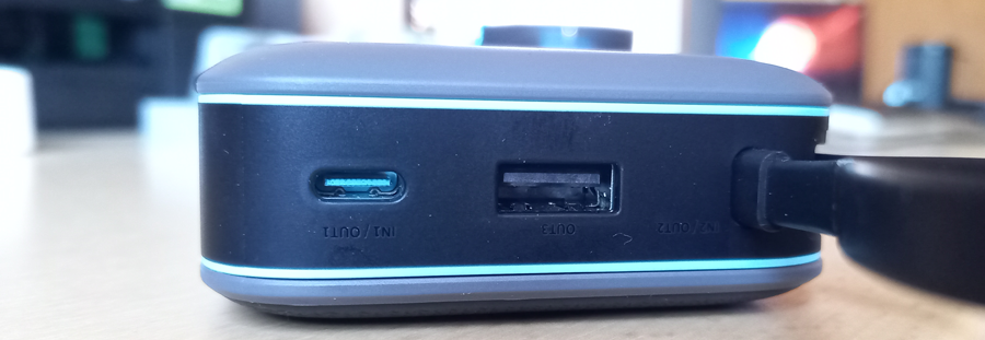 Die Anordnung an der Seite und Größe des Displays gefallen mir persönlich besser, als die spiegelnde und vermutlich auch schnell verkratzte Oberfläche bei INIU Modellen oder der MAOMAOCON Powerbank, die gut ein Drittel der Seitenoberfläche bedeckt. Das mag aber Geschmackssache sein.