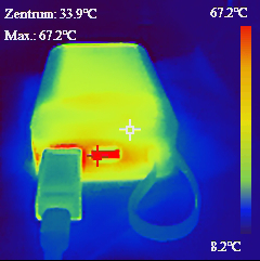 Die Aufnahme wurde kurz vor Ende der 40W Messung aufgenommen. Die höchste Dauerlast meines Testparcours die die Powerbank ohne drosseln absolvieren konnte.
