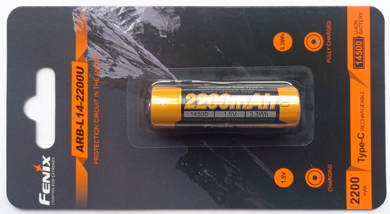Fenix gehört zu den wenigen Herstellern, die - groß und prominent - mAh statt mWh auf ihre Akkus schreiben, aber auch die mWh angeben, die entnommen werden können. Das finde ich sehr erfreulich, ähnlich macht es Keeppower mit ihren Modellen P1450U1 und P1450U2 auch. Der Fenix ARB-L14-2200U ist das zweite Modell des Herstellers im Bereich der 1,5V Akkus. Der Vorgänger ARB-L14-1600U mit 1600mAh bzw. 2400mWh nutzt noch einen Micro-USB Anschluss, während das aktuelle Modell auf USB-C setzt. Die Akkus können aber auch über die Pole mit 5V geladen werden.