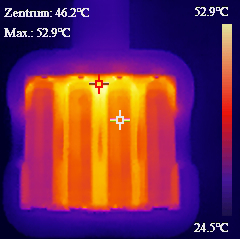 Erst bei 4A brechen auch die P1450i ein. Die Spannung kann nicht um 1,5V gehalten werden, die Akkus begrenzen recht schnell die Stromstärke selbstständig auf 3,8A und die Akkus werden fast 70°C warm. Dennoch sind die P1450i neben den Fenix ARB-L14-2200U die bisher einzigen Akkus die überhaupt die 4A Messung geschafft haben ohne sofort abzuschalten. Bei 3A, wenn man nur den Bereich betrachtet, in dem die Akkus mehr als 1,35V liefern, sind die P1450i die besten aller 25 bisher getesteten 1,5V AA-Akkus. Und das obwohl ihre interne Zelle mit 1000 mAh nicht zu den größten Zellen gehört.