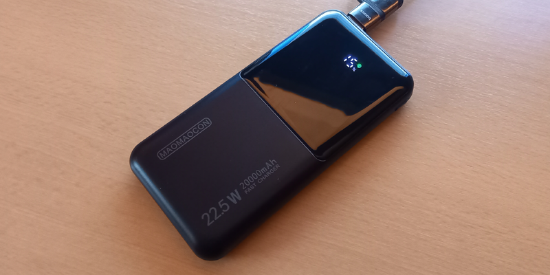 Mit der P28D verspricht die Marke MAOMAOCON eine 20.000 mAh Powerbank für gerade einmal 10 €. Optische identische Modelle findet man aber auch unter vielen weiteren Namen. 74Wh soll sie speichern können, mit bis zu 18W geladen und 22,5W entladen werden. Das sind keine Spitzenwerte, aber für die meisten Verbraucher im Alltag ausreichend. Wenn diese Leistungsdaten stimmen, sind 10€ ein sehr guter Preis.