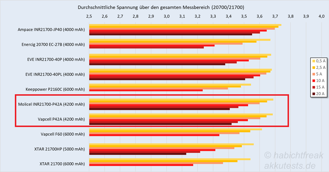 Die 4000 mAh bzw. 14,7 Wh werden nicht ganz erreicht, ähnlich wie beim vor zwei Jahren getesteten Vapcell INR21700 4200 mAh. Und das ist nicht die einzige Gemeinsamkeit. Aufgrund des Alters nicht mehr die besten Akkus am Markt, aber noch immer ein guter Akku für gehobene Anforderungen.