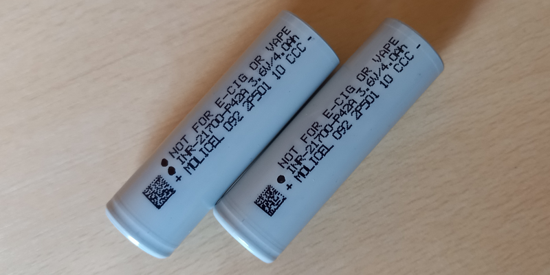 Die P42A von Molicel sind gute Akkus für hohe Ströme, auch wenn sie mit Modellen wie JP40 (Ampace) oder 40PL (EVE) nicht mithalten können. Da die P42A aber schon etwas länger am Markt sind und es damals noch gar keine Akkus im Tabless Design gab, ist das auch nicht verwunderlich.