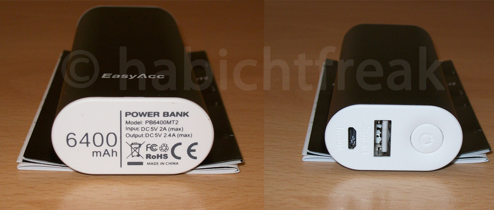 EasyAcc bietet derzeit drei verschiedene Modelle mit einer Ladung von 6400mAh an. Das ältere „EasyAcc 2.Gen Classic Mini 6400“ Modell (seit kurzem in Deutschland nicht mehr erhältlich), die von mir getestete „PB6400MT2“ und außerdem die „PB6400MT“. Letztere besitzt einen zweiten USB Ausgang, ansonsten ist sie baugleich zum hier vorgestellten Modell.