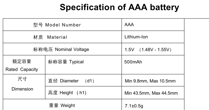 Waren bei der AA-Variante von SZEMPTY die Angabe zu mAh werbewirksam „nur“ mit 150mAh bzw. 7% höher als in den eigenen Dokumenten angegeben, bewirbt SZEMPTY die AAA-Variante gleich mit 20% mehr. 600mAh steht in der Artikelbezeichnung, der Artikelbeschreibung und ist auch auf die Akkus aufgedruckt. Aber in den internen Unterlagen entdeckt man eine ganz andere Zahl, nämlich 500mAh: