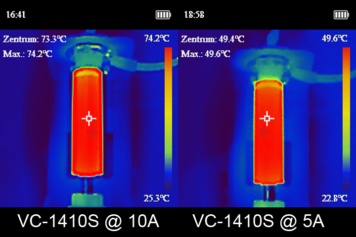 Wie bereits erwähnt, stimmten die Herstellerangaben der bisher getesteten VariCore Akkus überhaupt nicht. Und das trifft auch auf die VC-1410S zu. Zugegeben, die aufgedruckten 1000 mAh stimmen. Aber wie sehr kann man als Firma seine eigenen Produkte nicht kennen? Diese Akkus werden mit 1A (CDR) beworben und ich konnte sie problemlos mit dem zehnfachen belasten! Die VC-1410S sind neben den neuen Vapcell K10 vermutlich eine der wenigen Alternativen, seitdem der H10 vom Markt genommen wurde (und Shockli vom Markt verschwunden ist).