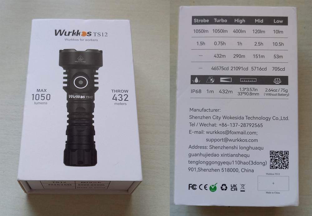 Immer mehr merke ich, dass mein täglicher Begleiter eine kleine Lampe mit 14500er Akku ist. Die verschiedenen C8 Modelle die ich habe, sind mir für die Jackentasche zu groß und zu schwer. Meistens habe ich die Solarstorm SC01 oder die Kronos X5 dabei. An letzterer stört mich der Teckschalter, bei der Solarstorm würde ich mir manchmal ein wenig mehr Leistung wünschen. Aus dem Wunsch einen stärkeren Flooder mit Seitenschalter und 14500er zu kaufen, wurde dann - auch aus Neugier - ein kleiner Thrower mit Seitenschalter in dieser Baugröße. Die Wurkkos TS12. Auch aufgrund des günstigen Preises, kam wohl dieser Spontankauf zustande. Ich habe im Wurkkos Shop inkl. Versand 17,44€ bezahlt. Die Lampe wurde nach ca. einer Woche geliefert.