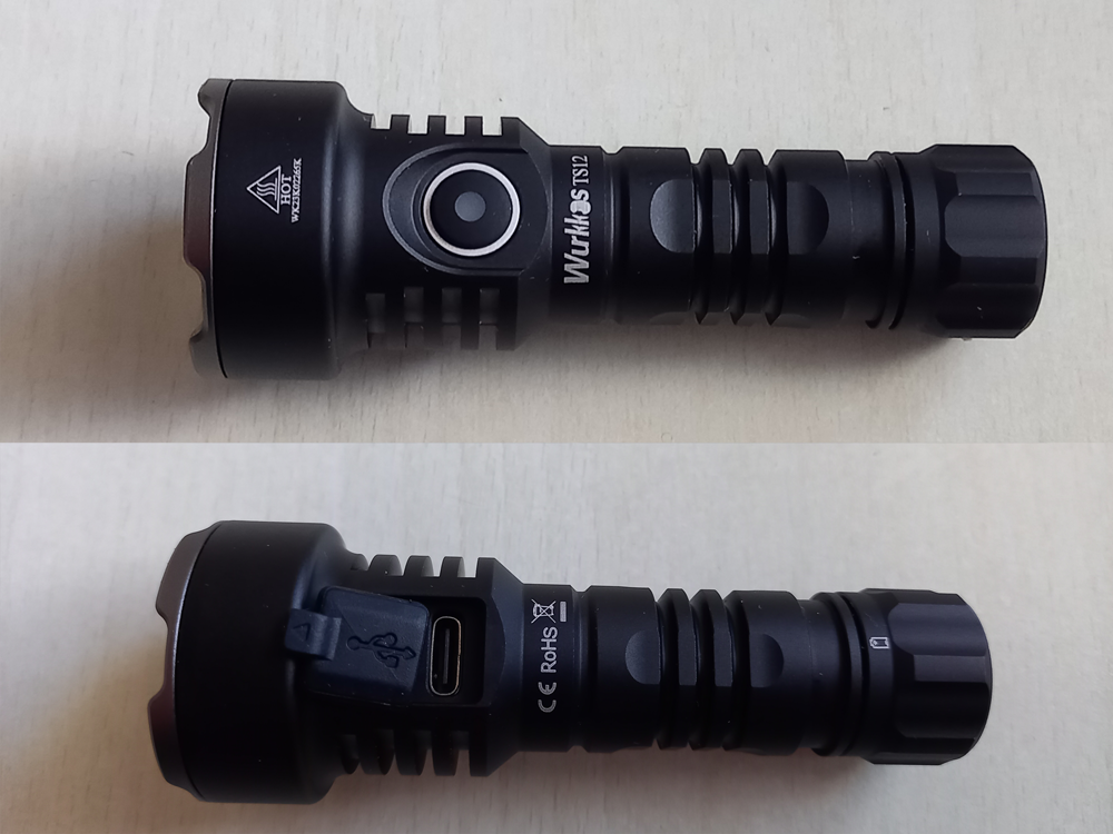 Wurkkos verspicht mit der TS12 einen Pocket-Thrower mit bis zu 1050 Lumen und 432 Meter Reichweite. Der Kopfdurchmesser beträgt 32,8mm und am Teck sind es 21,8mm. Die Länge beträgt 9,1cm. Sie wiegt rund 55g ohne Akku. Die verbaute LED ist mir gänzlich unbekannt. Erste Berichte zur TS12 zeigten ein sehr grünes Licht. Wurkkos bestätigt dies in ihrem Shop und bietet mittlerweile eine überarbeitete Version der LED/Lampe mit deutlich reduziertem Grünstich an. Anhand der Vergleichsbilder würde ich sagen, eine solche überarbeitete Version habe ich auch geliefert bekommen.