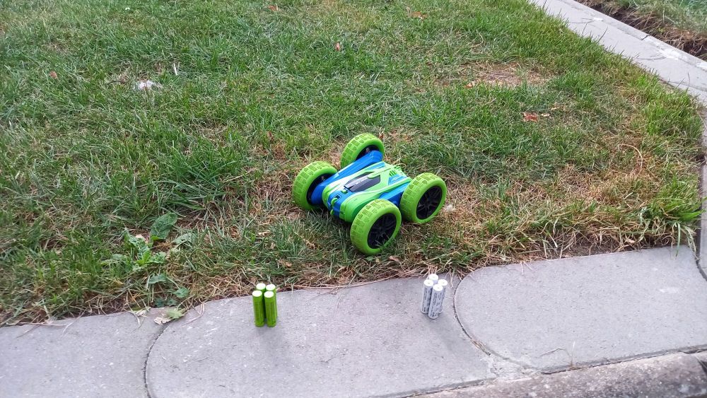 Betreibt man das Auto hingegen mit den - zufällig auch farblich sehr passenden - XTAR Akkus, macht der kleine Racer richtig Spaß. Egal bei welchem Untergrund. Hier merkt man den Unterschied zwischen 1,2V und 1,5V deutlich. Ein 6V Motor möchte eben auch 6V haben und nicht 4,5 bis 5V (unter Last versteht sich). Selbst im Gras schafft der Racer nach 30min Spielzeit noch immer Stunts die er selbst mit randvoll geladenen Laddas auf Asphalt nicht schafft.