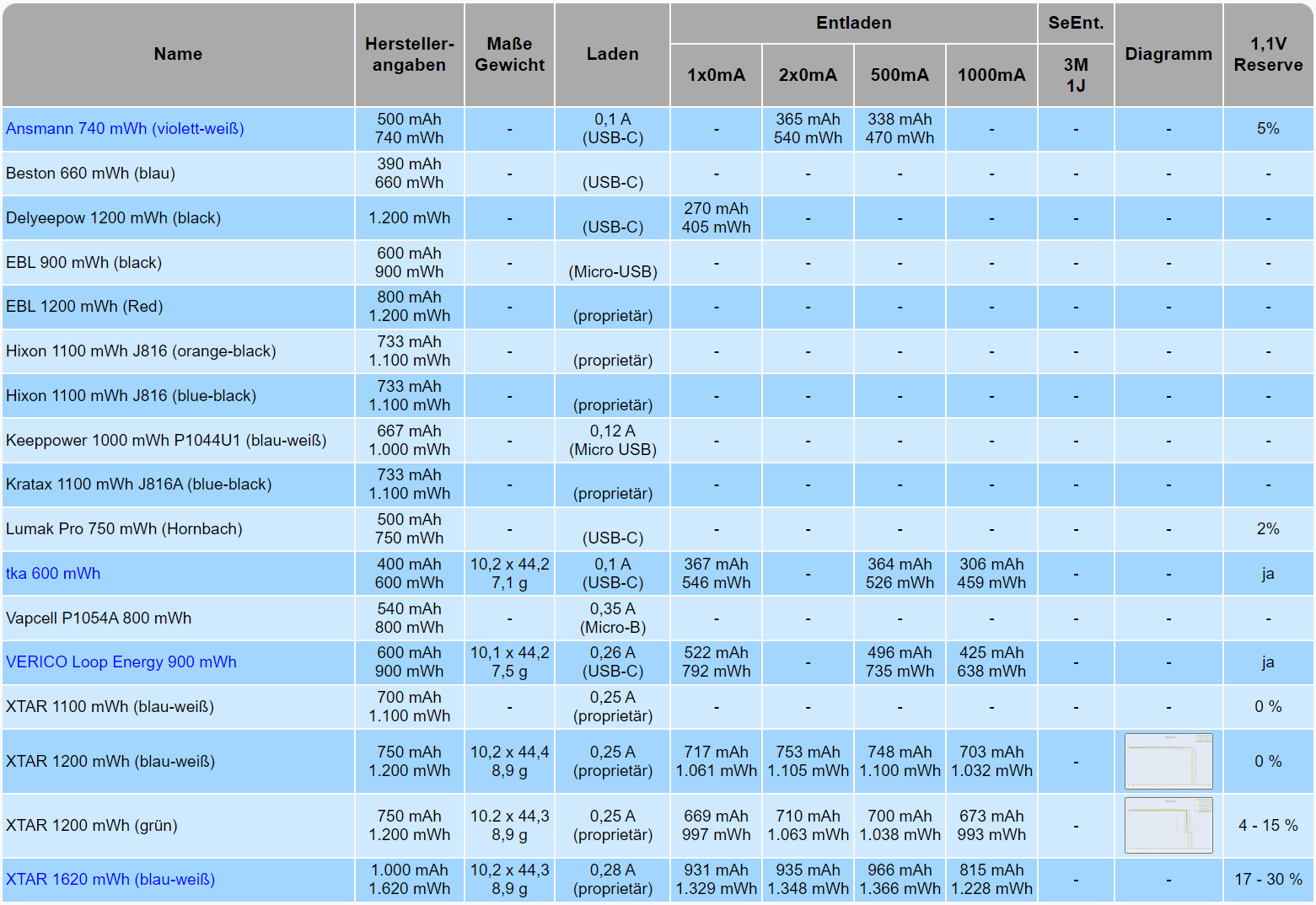 Eine tabellarische Übersicht aller getesteten 1,5V Akkus findet ihr hier.