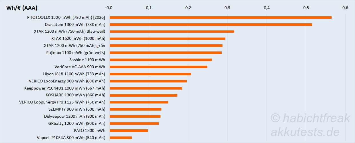 In den zwei Jahren gab es lange Zeit keine Rangliste. Irgendwann habe ich eine für das Preis-Leistungsverhältnis eingeführt, die Leistung der Akkus selbst wurde aber lange Zeit nur alphabetisch aufgelistet. Nach nunmehr zwei Jahren und 61 getesteten Modellen kam mir die Idee, einen Vergleichartikel zu veröffentlichen. Denn wer möchte schon über 60 Einzeltests lesen?